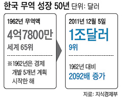 본격적으로 추진한 지 50년 만에 세계에서 단 8개뿐인 '무역 1조달러 클럽'에 대한민국의 이름을 새롭게 올렸다.