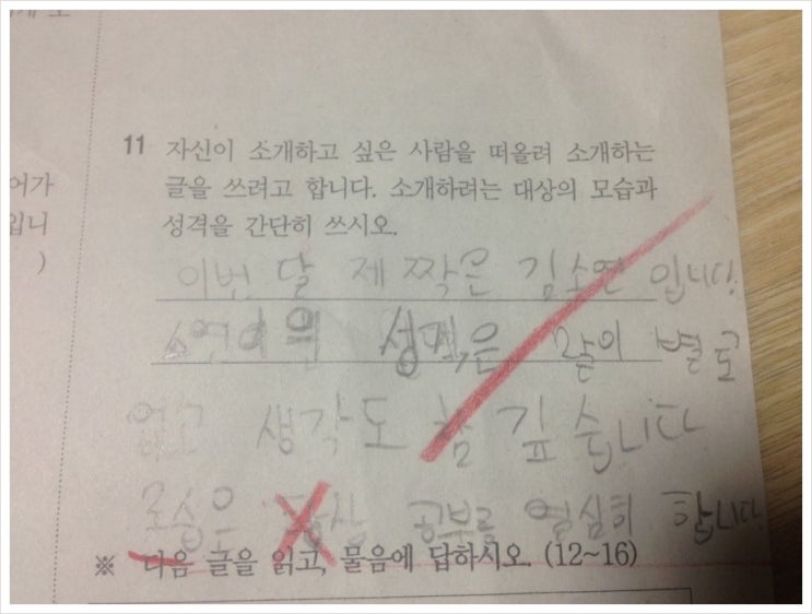 이 문제 때문에 이삭이 시험지를