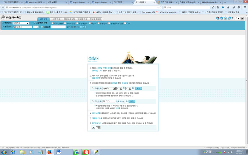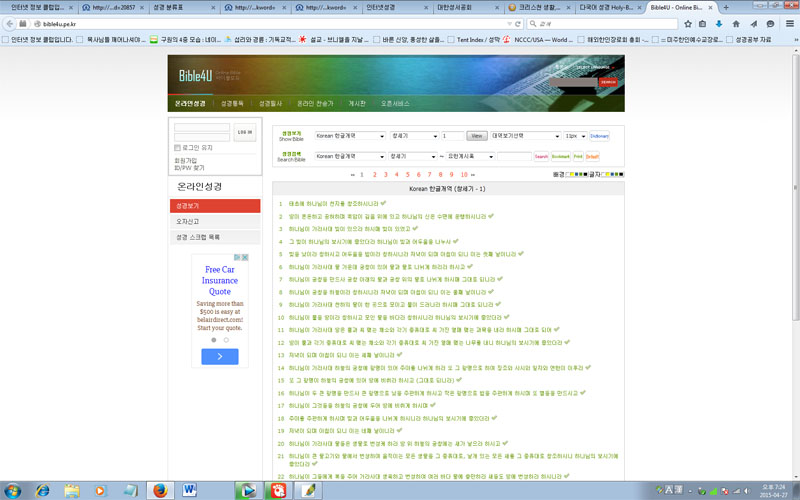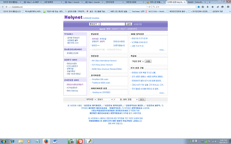 * 온라인 성경들을 올려 봅니다. 이 밖에도 더 많은 것들이 있습니다. 각 성경마다 장잔 점이 있습니다. CTM 인터넷 성경 같은 경우는 쉬운 성경이 있습니다. 대한성서공회 성경을 번역한 대한성서공회 것이구요. onmam 성경은 오디오 듣기가 있어서 올려봅니다. 홀리 바이블은 제가 많이 씁니다 제일 빠르고 군더더기가 없어서요. 바이블4U는 제일 많은 대조역을 가지고 있습니다. 좋은 온라인 성경 싸이트 여러분도 추천해 주세요