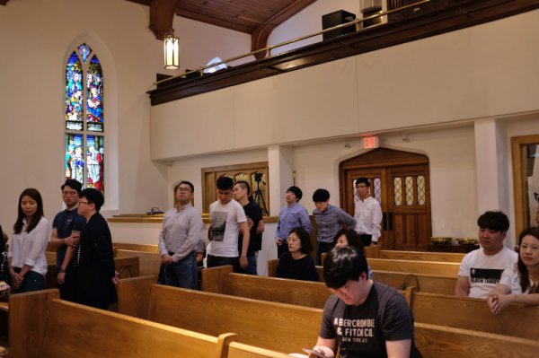 오늘 주일에는 성찬식 이전에 교인들 모두가 서로를 안아주고 축복해주는 시간이 간략하게있었습니다.