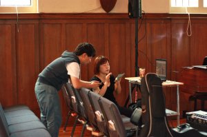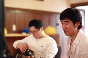 찬양팀 금요일에 셋팅하는 장면 입니다.모두들 열심히 하시네요... 회장님 열심히 셋팅을 하고 계십니다. 복잡한 기기도 척척 다루시네요 ^^ 유경집사님은 기타 리스트 이십니다. 모니터를 연결하고 계시네요 드러머 제롬이 작곡실력이 뛰어 납니다. 기타 다른 악기도 손댈줄 아시는 능력이....강민 집사님 곡 정리 열심히 하고 계시네요.... 오늘 학교 시험 잘보세요 정집사님 역시 기타 잡고 계시면, 포스..