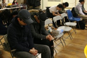 (금요 찬양팀이 교회에 6시까지 모여서 셋업하고 찬양 연습하느라 거의 저녁들을 못 먹고 옴니다. 근데 우리 홍집사님이 이렇게 피자를 사가지고 왔습니다. 거의 매주 금요일 먹을 것을 가지고 왔던 것 같습니다. 주께서 물질로 부족함이 없도록 채워주시고 축복해 주시길 기도드립니다~아멘!) 초상권이 침해당한다고 이렇게 후두를 깊게 둘려쓰고 사진에 응했습니다. 금요일 오전에 많이 아파서 앰..